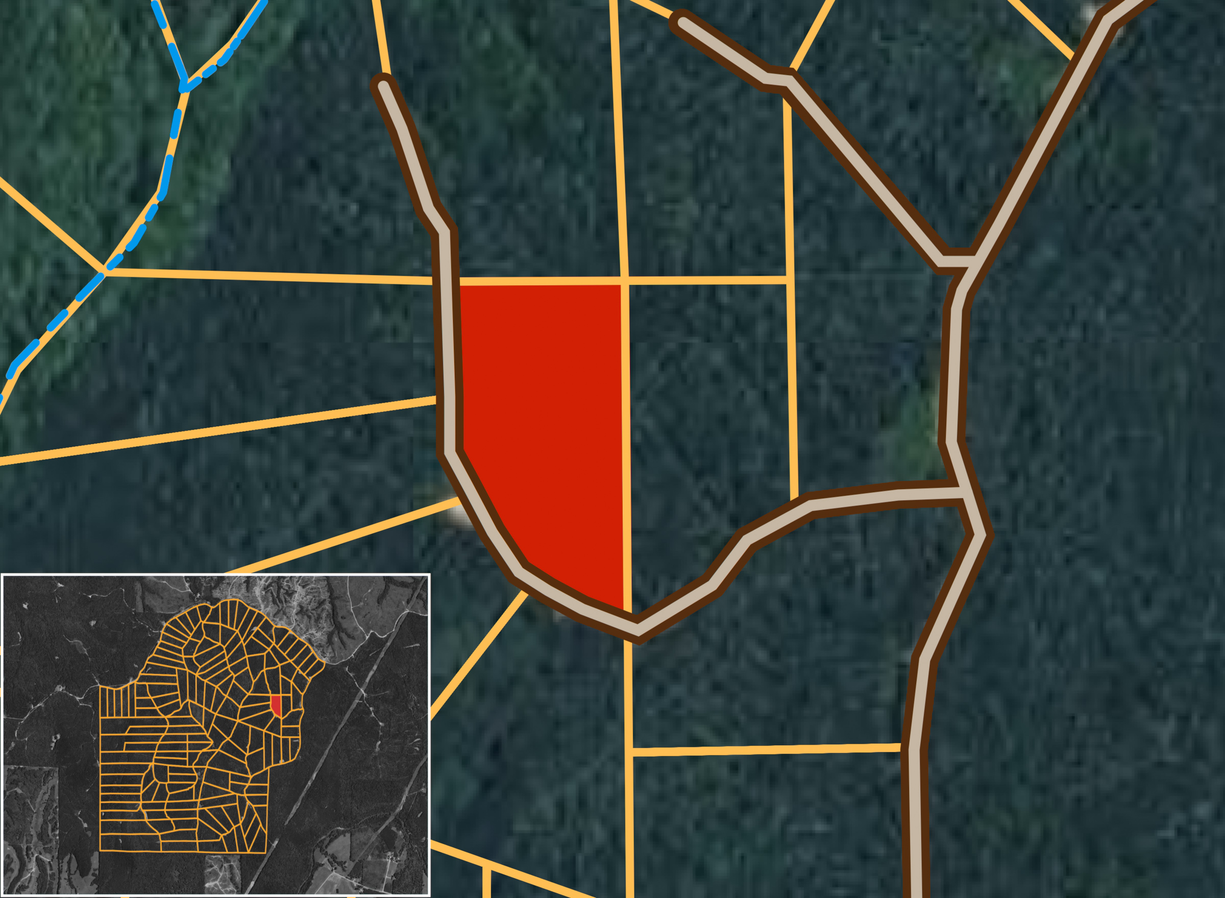 Lightning Ridge Tract 140 is a 5.42 acre property that features timberland and a gentle rolling scenery. This piece of Lightning Ridge provides a quiet, rural setting, ideal for a homestead, cabin, or hunting ground.