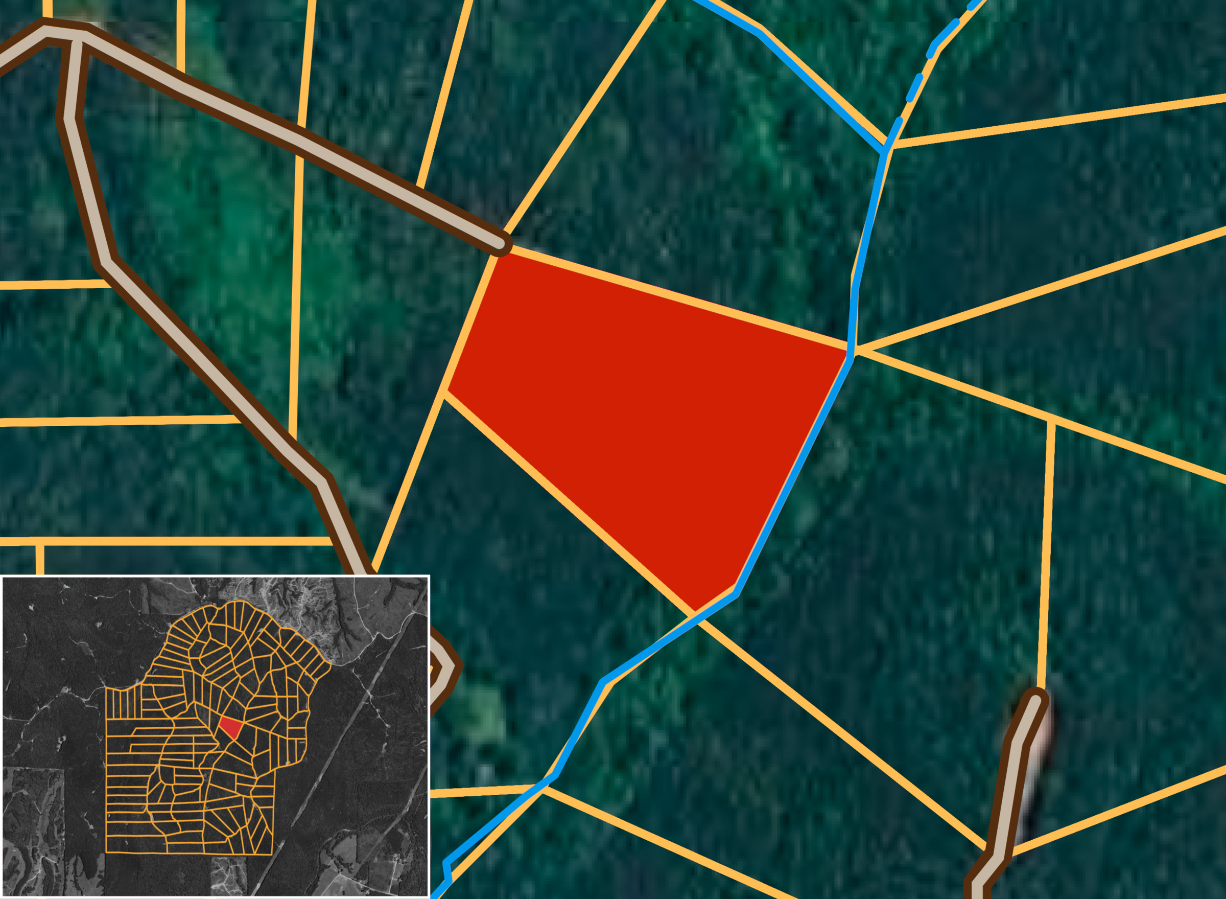 Lightning Ridge Tract 72 is a 9.49 acre property that features timberland, Caney Branch creek, and a gentle rolling scenery. This piece of Lightning Ridge provides a quiet, rural setting, ideal for a homestead, cabin, or hunting ground.