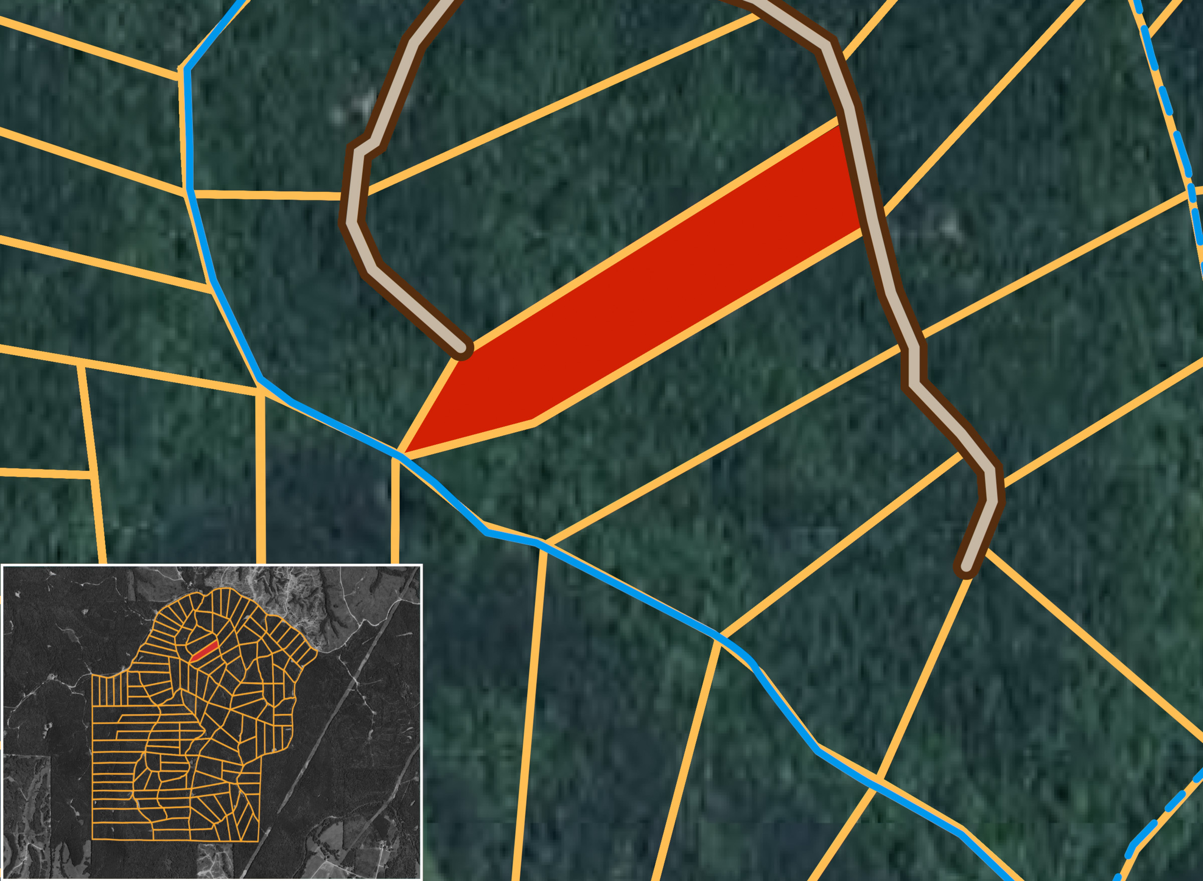 Lightning Ridge Tract 94 is a 5.91 acre property that features timberland and a gentle rolling scenery. This piece of Lightning Ridge provides a quiet, rural setting, ideal for a homestead, cabin, or hunting ground.