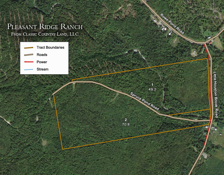 Tract 2 is a great 70.80 +/- acre piece of land located on the southern half of Pleasant Ridge Ranch, giving it great access from the county road. This property consists of beautiful evergreen trees and foliage throughout, with a gorgeous brook running through the eastern part of the tract that offers unforgetable views. There is an abundance of wildlife on and around this property which makes it great for the hunting enthusiast as well. Take advantage of this spot to build a permanent home or weekend getaway with everything it has to offer!